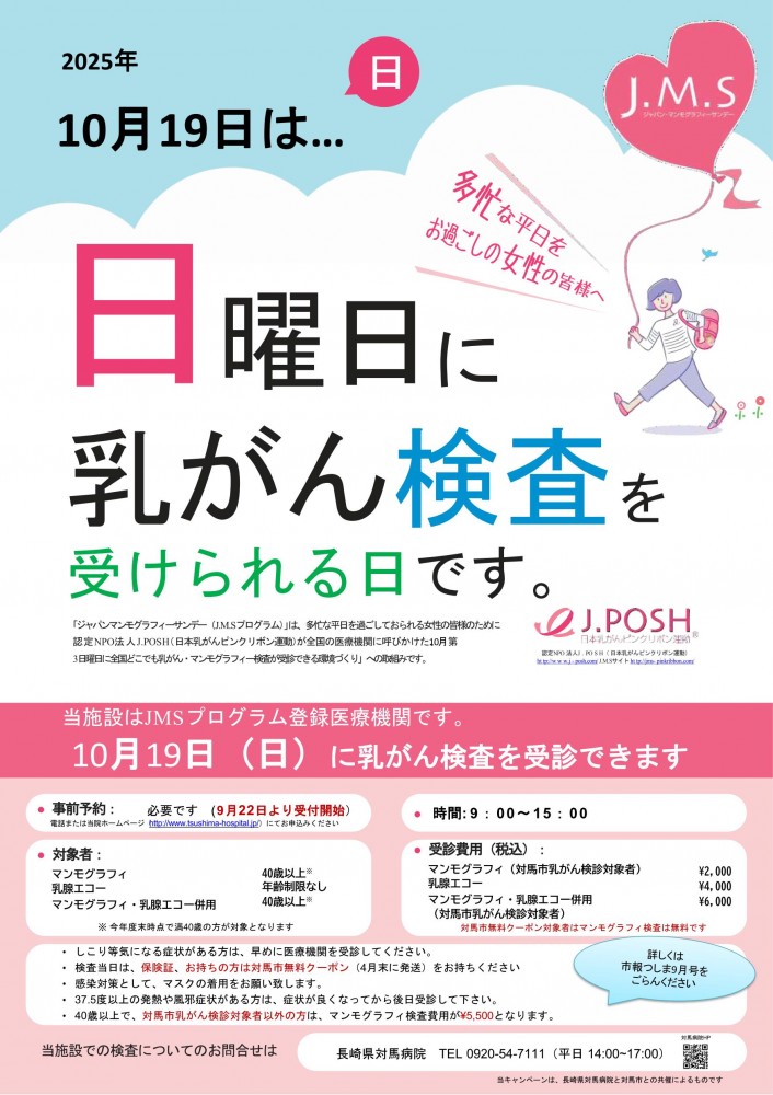 対馬地区でも、対馬病院にてジャパン・マンモサンデーを開催します。