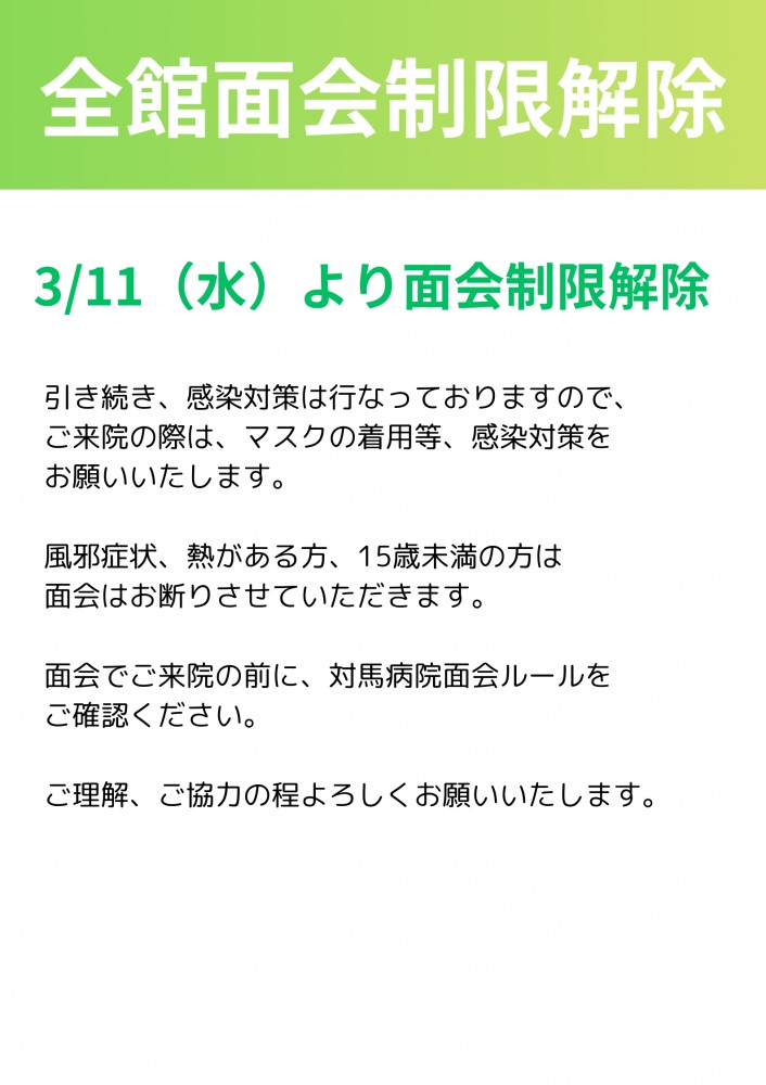 全館面会禁止解除のお知らせ